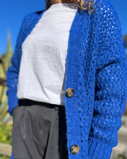 Chaqueta larga punto gordo azulón