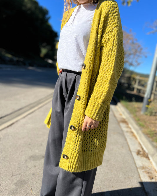 Chaqueta larga punto gordo mostaza
